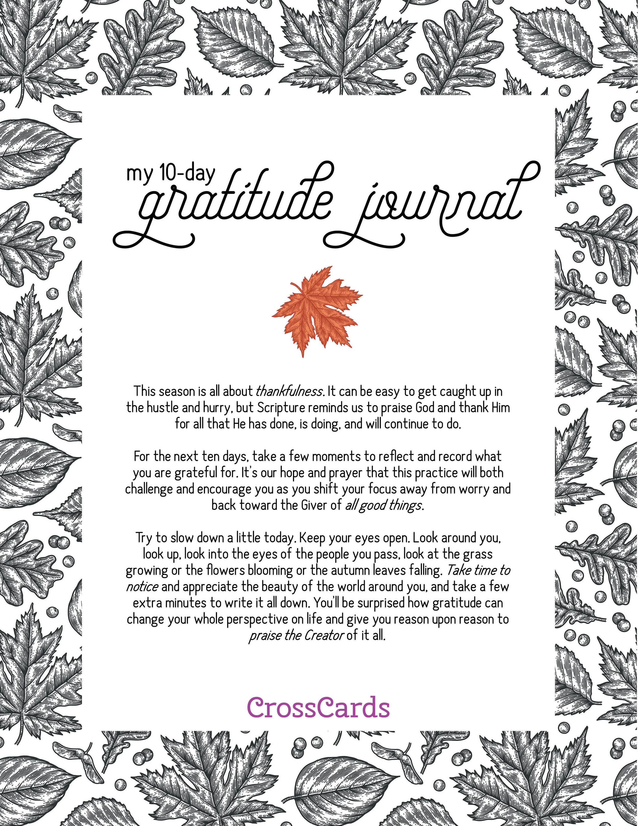 You'll just need to print it out (if you want to do more than 10 days, just print more of the internal pages!) and grab a pen to get started-- easy peasy.
