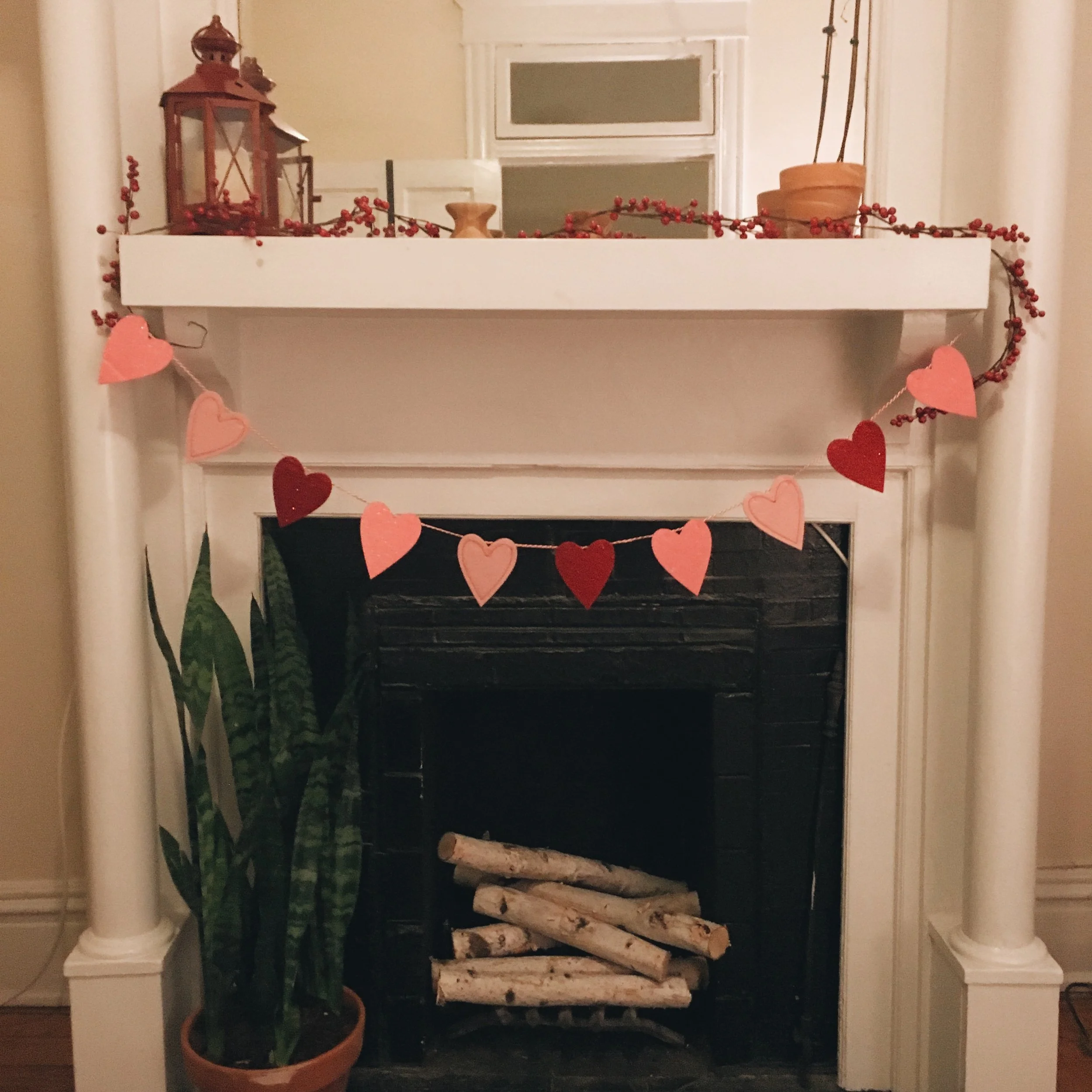 - The festive garland across our mantle. (I bought something pink and glittery!!!)