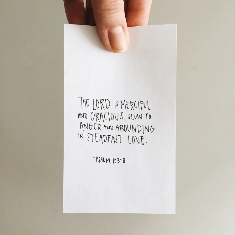 I want to instead lean in, to press onward, to sit at the feet of my Creator and King and give all of my broken, messy, reckless heart to Him, knowing that the words of that little verse are so true. He is merciful. He is gracious. He is slow to anger. He is abounding in steadfast love. Nothing I have done or will do or have said or will say or have felt or will feel will change that.